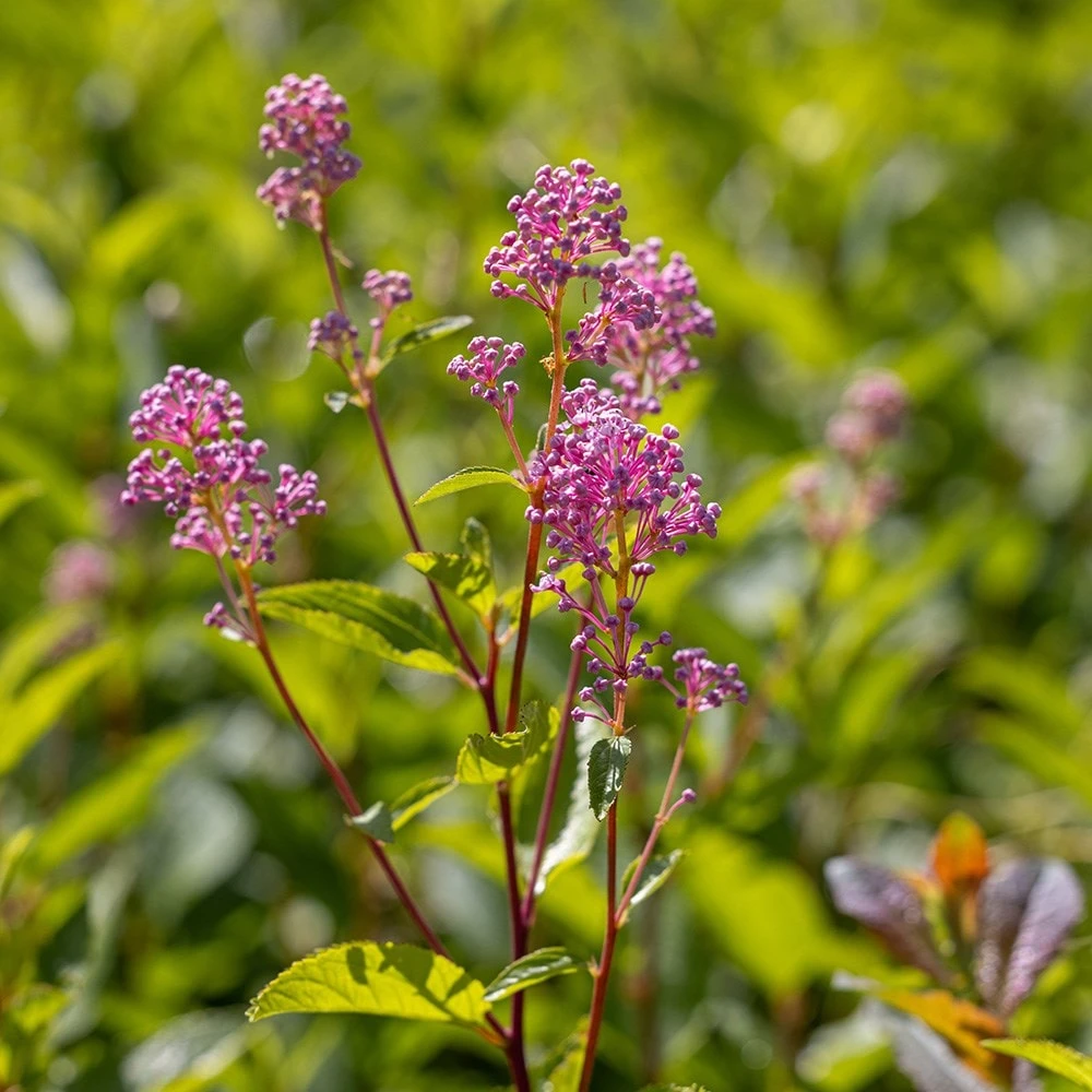 A relative newcomer to our range, this ceanothus is sought-after for its clusters of small pink flowers, which appear at the tips of the purple-flushed stems from midsummer to early autumn. A great addition to the mixed border, it has a relatively upright habit, so it can also be used to make an informal hedge or screen in a sunny, sheltered spot.