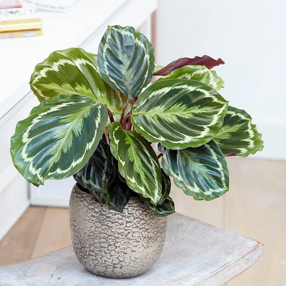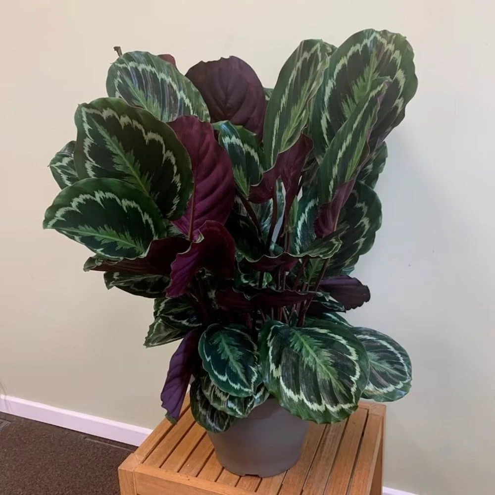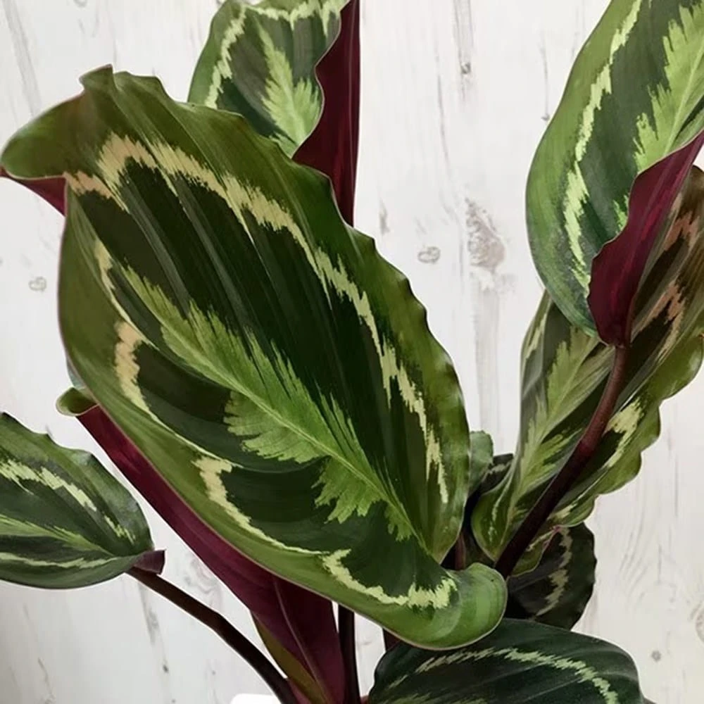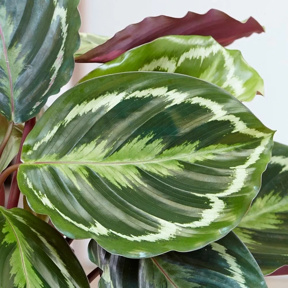 One of the most beautiful and colourful foliage houseplants, this close relative of the calathea has relatively large leaves that unfurl to reveal distinctive patterns on the top, and a red-flushed reverse. They will add an exotic touch to bright misty bathrooms or kitchens.